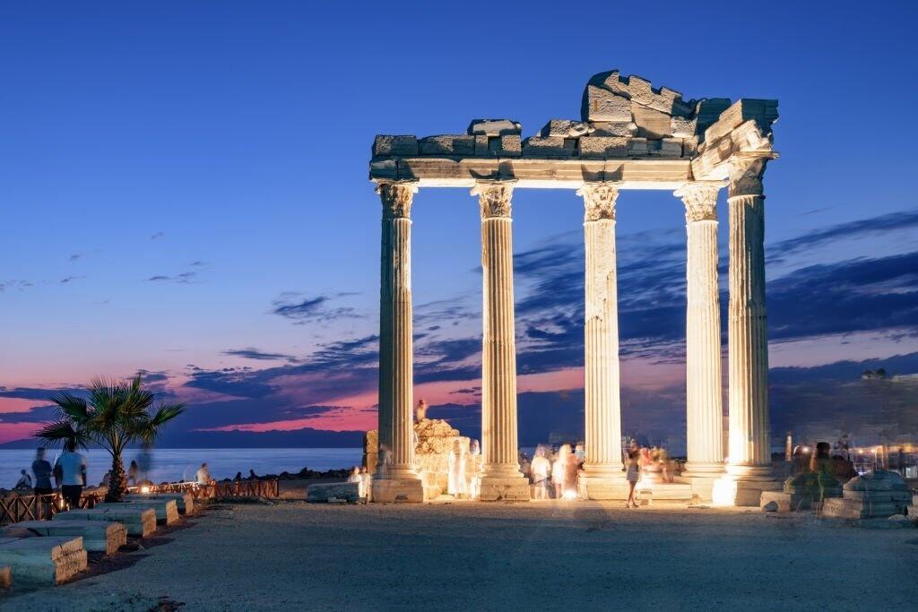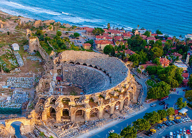 Side antique city is the most important and oldest ruins in South of Turkey. The word Side means pomegranate. During the excursion you will be able to explore remarkably preserved archaeological wonders which include an ancient theater, an imposing city wall, stunning Roman agora, The Temple of Apollo which is the eternal symbol of Side. The day will starting with visiting the oldest mosque in Manavgat Called Külliye Mosque, where you can have a chance to witness the traditions and prayings. You will have an opportunity to explore Side Old Town with its narrow streets and alleys lined with shops, restaurants, boutiques and cafes. While you will have the opportunity to dine overlooking the Temple of Apollo at sunset, you will also have the chance to watch Side from the sea on a boat. During the excursion you will also visit one of the most beautiful waterfalls of Turkey - Manavgat Waterfall which is famous for its wide cascade and do some shopping in one of the best jewellery and leather stores in the area.